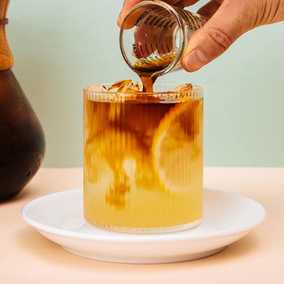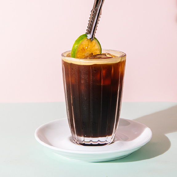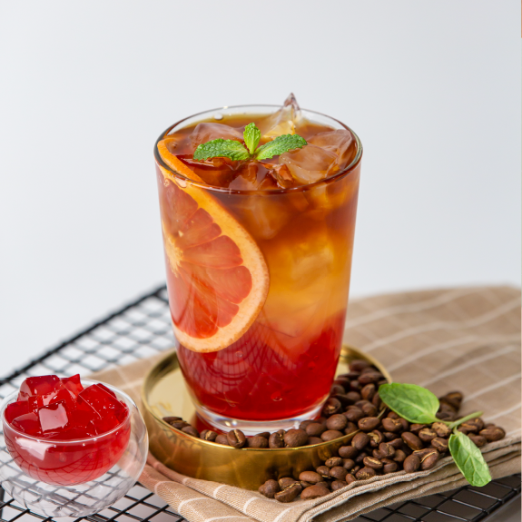 云南冷萃咖啡液、西柚果酱、佳芝味甘蔗糖浆、柠檬汁、过滤水、冰块、西柚片