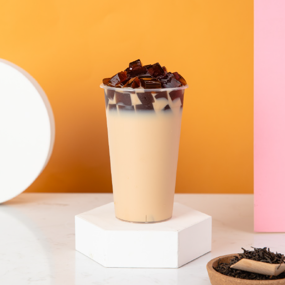 晶花奶基底、晶花锡兰茶水、佳芝味金黄糖浆、热水、晶花红豆冻、晶花板栗冻