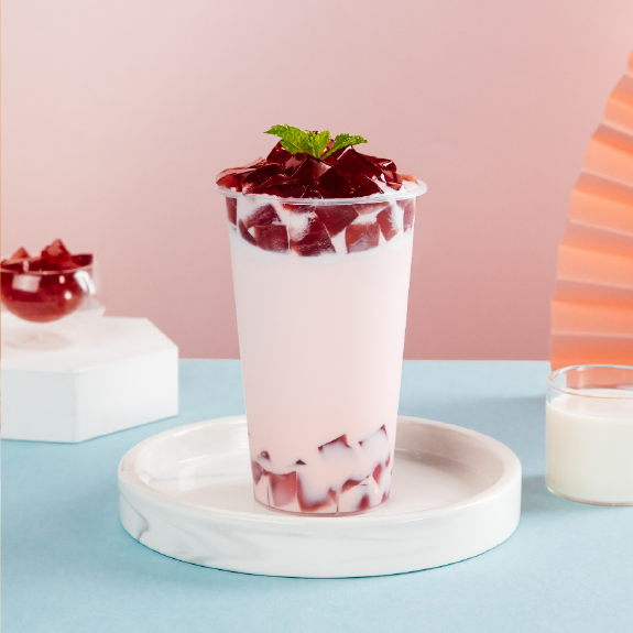 晶花奶基底、晶花甘蔗糖浆、晶花茉莉花茶水、草莓百利甜、晶花红酒冻