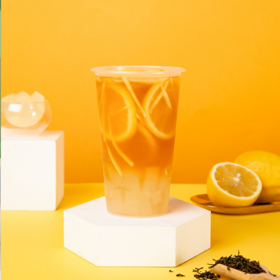晶花茉莉花茶水、佳芝味甘蔗糖浆、黑枸杞冻、甜橙果汁、甜橙片、柠檬片、热水